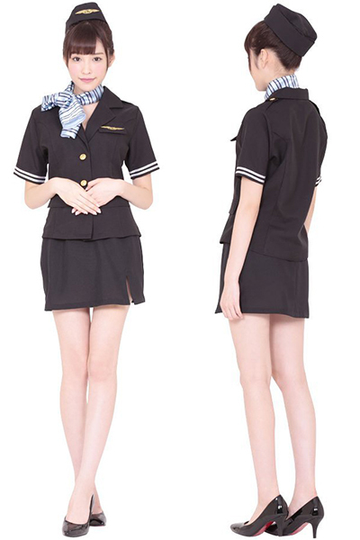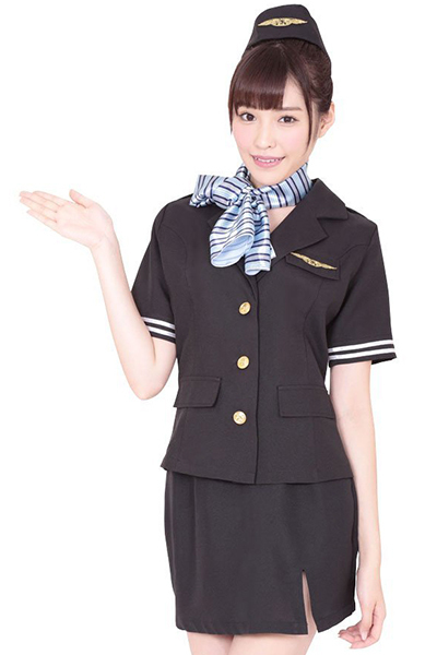 スカーフの巻き方次第で印象が変わる!オシャレなスチュワーデスのコスプレ衣装。スカートは短めでセクシーに!帽子と胸元にある刺繍でリアル感もバッチリ。これ一着で憧れのキャビンアテンダント気分が味わえるコスチュームです。