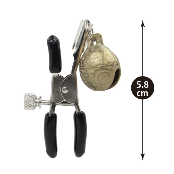 ネジで強弱の調整が可能!クリップにオシャレな鈴が付いた、乳首クリップ2個入り。乳首を挟む部分が柔らかなゴムで出来ている為、肌を傷付ける事なく安心してお使い頂けます。挟む強さを変更できるネジ調整式だから、初めての方でも適度な「痛気持ちいい」快感を楽しむ事が出来ます。揺れるたびに鳴り響く鈴の音色が、羞恥心を煽るボディクリップです。
