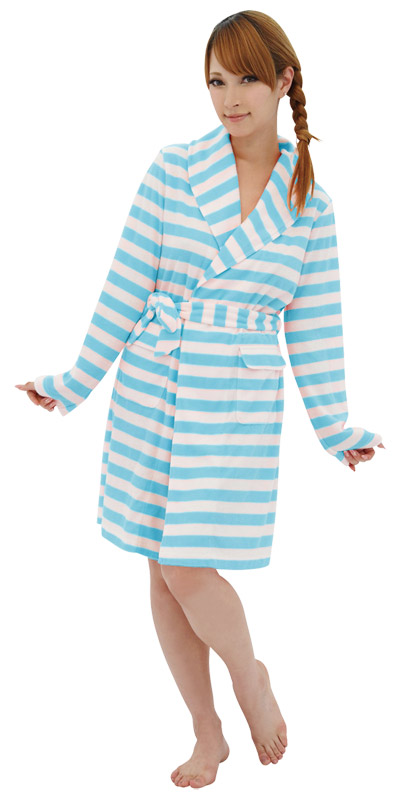 家で過ごす時もオシャレがしたい!そんな女の子にピッタリのガウン。涼しげなアクアブルーのボーダー柄でキュートさをプラス!パッと着られるから、急な来客にも焦らず対応できちゃうよ!女子力UPに最適なアイテムです。