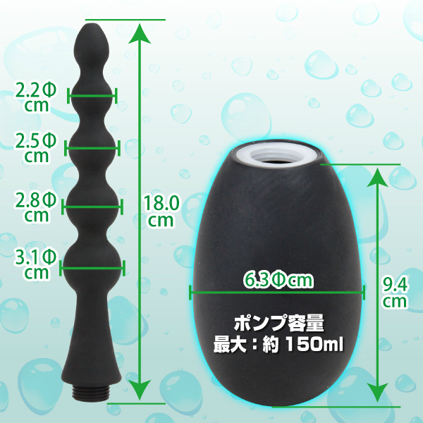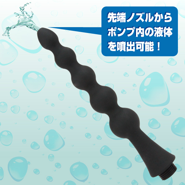 だんだん大きくなる5連のボールでアナルを連続刺激!肌触りのよいシリコン素材で作られたアナルグッズ。先端に穴の開いたノズル部分を回して取り外すと、その内部は空洞。中にローションを入れれば、挿入しながら潤いも足せるディルドとして、液体を入れれば洗浄器として使える優れもの。これ1つでプレイを一通り楽しめる便利なアナルグッズです。※専用の取替ヘッド(b19707)(b19708)(b19709)(b19710)(b20854)も販売中です。