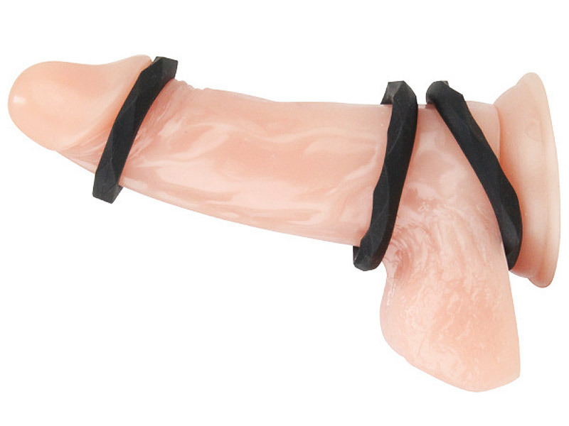 スタイリッシュなカッティング加工を施した、ブラックシリコンの男性用コックリング3個セット。●さらりとしたシリコン100%素材を使用●リング周囲を宝石のファセットカットのように加工●気分で選べる小中大の3サイズセット●内径:小2.7φcm・中3.1φcm・大3.6φcm。竿を程よく締めつけることで早漏防止にも!さらに、カット加工がパートナーへ刺激を与えます。その日の気分でサイズを使い分けたり、それぞれを玉・根元・カリ首に同時装着してもOKな万能サポートグッズです。