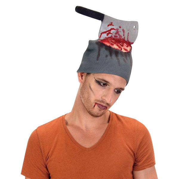 な、何か刺さってますよ!?斧がぐっさり刺さった頭を演出するユニークなホラー帽子。●帽子上部に刺さった大きな斧付き●地肌&血のり加工で痛々しさ倍増●男女共にOKのフリーサイズ。ハロウィンや肝試し等にもぴったり!かぶるだけで雰囲気満点のホラーグッズ。脳天直撃でとっても痛そうですが、刺さっている斧は抜いてあげられませんのであしからず。※こちらの商品は受注発注商品の為、ご注文から発送まで2〜3営業日掛かる場合が御座います。
