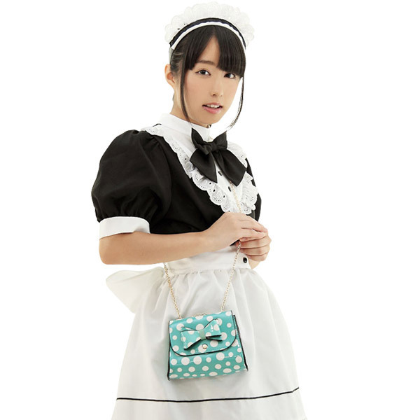 明るいブルーに白ドットを散らしたチェーンストラップのミニポシェット単品。●はじけるシュワシュワ感・ソーダみたいな水玉プリント●フラップにリボンを飾って存在感をプラス●可愛く斜めがけ・華奢な金色チェーン。たっぷりとフリルを使ったボリュームがあるコスチュームにマッチする、ミニマルサイズの台形ポシェットです。※こちらの商品は受注発注商品の為、ご注文から発送まで2〜3営業日掛かる場合が御座います。