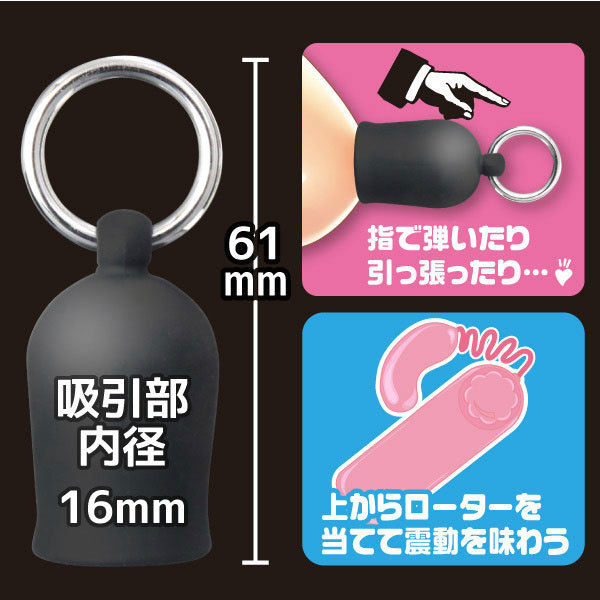 スタイリッシュなシルバーリング付き♪吸引刺激で乳首を責める小さめカップのニップルサック。●ミニサイズ(内径16mm)のシリコン製カップ●両乳首に使える2個セット●吸盤作用で乳頭にピタッと密着●トップにシルバーリング付き。お肌に優しいシリコンカップが乳頭をしっかり吸引してくれる乳首責めグッズ。トップのシルバーリングは引っ張るも良し、弾くも良し!お手持ちのローターで振動刺激を与えてもOKです。