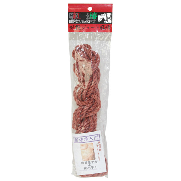 なめし仕上げ&朱染めの本格派!ジュート素材のSM緊縛用ロープ。●本格派の高級ジュート麻縄●丁寧ななめし処理加工済み●緊縛ボディを妖艶に魅せる赤色●様々な縛りが出来る全長7m●縄の直径は程よい太さの7mm●緊縛入門用ミニガイドブック付属。高級黄麻素材を使用し、丁寧になめし処理&朱染めされた紅椿シリーズのSMロープ!後手縛りと前面亀甲縛りのミニガイドブック付きなので、本格的な緊縛を今から覚えたいという方にも最適です。