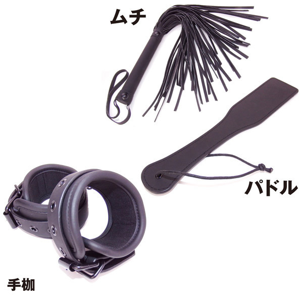 これからすぐにSMプレイを始めたい方に最適な「絶対イカせるSMグッズ (ボンデージスターターキット)」です。SMが初めての方に最適な手枷や足枷からSM上級者のためのパドルや鞭など、今すぐにSMが始められる選りすぐりの7点がセットになったお得なスターターキットです!最初のうちはソフトな拘束プレイから慣れていき、後手で拘束やアイマスクで目隠しをするなど、段階的なレベルアップが可能なSM七つ道具となっています。夜の性生活を刺激的なものに変えたいカップルさんにもオススメです!