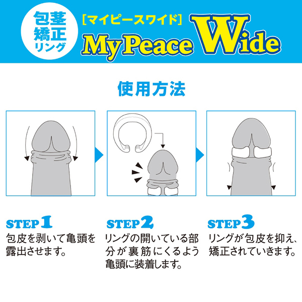 ロープライスで人気の包茎矯正用リングが従来よりも3倍ワイドになって新登場!これまで以上にズレにくく、そして外れにくくなりました♪包皮をむいて簡単ワンタッチで装着。亀頭を露出することで清潔さをキープしつつ、徐々に剥きグセをつけることで男らしさを鍛えてくれます!こちらはスタンダードな硬さの昼用Sサイズ。包皮の皮が多い人のためにリング幅もぐぐっと3倍ワイドに♪尿道や裏筋を締め付けない特許取得済みのオープンなC型リングと、人間工学に基づいた3D特殊形状だから使い心地も抜群!伸縮性に優れていて勃起時にも自然に広がり、サオをしっかりとホールドしてくれるので、うっかり脱落して紛失するなんてこともありません。信頼性の高い日本製エラストマー「メディカルスキン」を採用で安心♪
