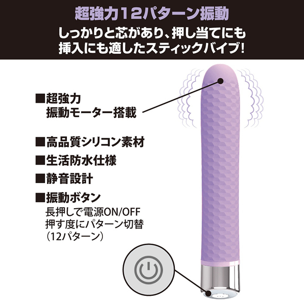人気の「ハイスピードタンスティック(b26557)」や、挿入できるリモコンバイブ「ファンシークラムシェル(b25173)」を生み出したプリティラブから、中イキ派の女性に最適な大きさ約16.8cmのロングなストレートバイブが登場しました。ボディには滑らか質感の高品質シリコンを使用!単四電池×2本で楽しめる本品は、先端部分に12パターンの振動を搭載した強力モーターを内蔵し、敏感部分への押し当てや根元まで挿入してポルチオ刺激したりと楽しみ方色々。絶頂必至な快感がこれ一本でお楽しみいただけます♪生活防水・静音設計