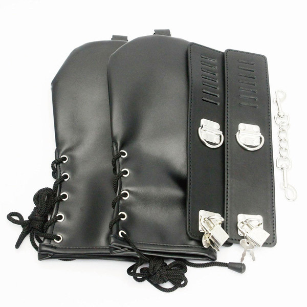 両手をまるまる覆って完全拘束!光沢感のあるフェイクレザーを使用した、手にはめてベルトで固定するグローブ手枷が登場。指先が自由に動かせる手錠とは違い、手をグローブで覆うことで掴む動作を封じ込められるのがコチラ!手枷には両手首を繋ぐチェーンや、グローブ先端にはリードを繋ぐことのできるリングがついているため様々な手段でパートナーを制御出来る♪手首部分がキツイ場合は紐で調整することも可能。他のボンテージグッズと一緒に使用しても◎