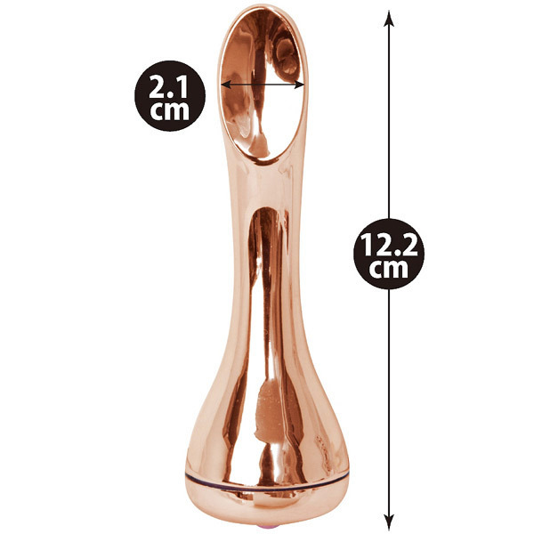 コンパクトサイズのスタイリッシュなメタリック電動マッサージャー!快感スポットに的確にフィットする曲線美メタリックフォルムで確実にイカせます。挿入、押し当てどちらにも適したボディでプレイの幅を広げます。
