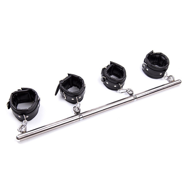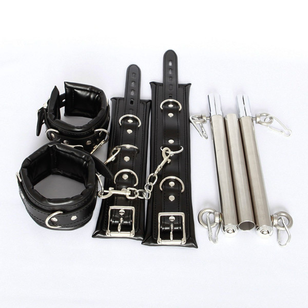 M字開脚や背面での四肢拘束が出来る本格的な拘束棒と手枷、足枷のセット商品です。ずっしりとした重量感のあるのが特徴で、ベルトはクッション入りで柔らかく、肌を保護してくれるので着心地が非常に良いです♪拘束棒はステンレス製のポールのため強度も抜群!ステンレス棒は3つに分解することで可搬性も良いので、バックに入れて持ち運びする際にも便利です。枷は合皮製で長時間装着していても跡が残らない親切設計♪M字開脚という卑猥なポーズはもちろん、拘束棒を中心に自由な拘束スタイルを楽しめます♪