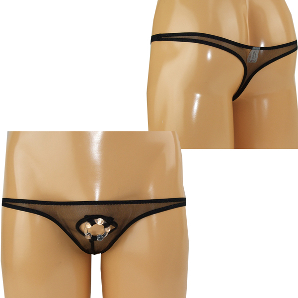 HOME> ランジェリー > メンズ ショーツ・ビキニ > 極薄穴あきイボリング付きTバック ブラック