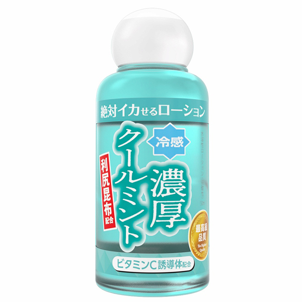 業界初!利尻昆布を配合した最高品質の和風ローション!持ち運びにも便利な50mlの少量ボトルが登場!お肌にやさしい水溶性で使用後もさらっと水洗い。お肌からヘアケアするビタミンC誘導体配合。「濃厚クールミントタイプ」ひんやりした爽快感を生み出す、アツい夜にぴったりの冷感ローション。こってり濃いめで、糸引きもおとなしく、まろやかな感触を味わえます。SMプレイにも活躍中です。配合成分:精製水、グリセリン、エタノール、ヒドロキシエチルセルロース、リシリコンブ、クラドシホンノバエカレドニアエ多糖体(フコイダン)、アスコルビン酸Na(ビタミンC誘導体)、メントール、青色1号、EDTA-2Na、ブチルカルバミン酸ヨウ化プロピニル