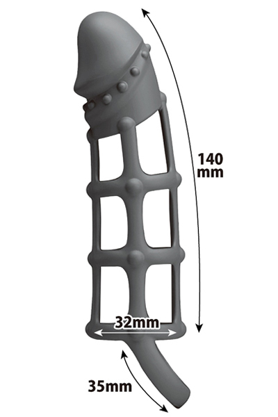 格子状のペニス専用アーマーで完全武装!男の夜をロングサポートするシリコン製のペニスサック。肌に優しい高品質な医療用シリコン素材を採用!格子の隙間から肌を露にすることで粘膜が触れる範囲を広め、挿入感を損わずプレイを楽しめる♪自慢のムスコに鎧を被せ、完全武装で夜の勝負に挑め!