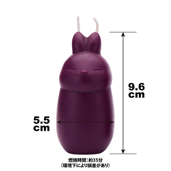 フルーティなカシスの香り漂う可愛いウサギ型低温ろうそく(紫)。天然素材にアロマフレーバーを加え、さらに融解点を抑えて仕上げた蝋燭!発色は鮮やかで肌への負担が少なく、アロマの香りで一層場を盛り上げる♪肌の弱い方、初心者の方にも最適!ご自宅用やプレゼントに是非いかがでしょうか?燃焼時間は約35分間(使用する環境によって変化します)