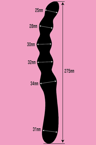 アナル入門者でもOK!初心者でも安心してお使い頂ける、前後どちらの穴にも挿入可能な双頭アナルスティックです。ボディが少し曲がっているから挿入時にも負担なくフィットし、程よい弾力感のあるラバー素材が心地良い快感を与えてくれます!先端から中腹まではボールを連ねたような双頭タイプなので太さと長さも同時に楽しめ、S字なフォルムが男女どちら様にも気持ちいい抵抗感を与えてくれます。27cmのロングサイズなので、穴同士の結合プレイや同性プレイにも最適です!