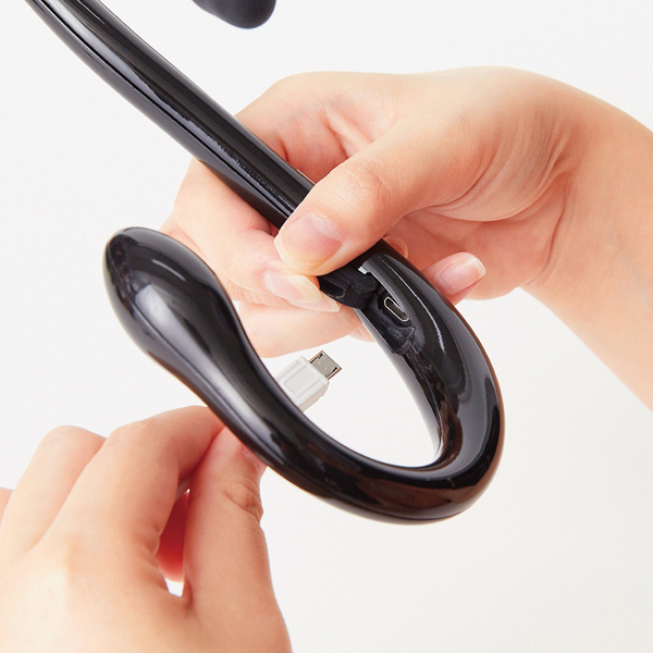 S字フックを大きくしたようなスタイリッシュなデザインが特徴のmicroUSB充電式バイブ。プニッと柔らかなシリコンヘッド&滑らかで硬質なプラスチックヘッド、素材の違う二つの先端内部には3パターンの振動機能を搭載!自分好みの力加減で調節しながら刺激が欲しい場所へ押し当てるだけで、奥まで響くような振動が体感出来る♪