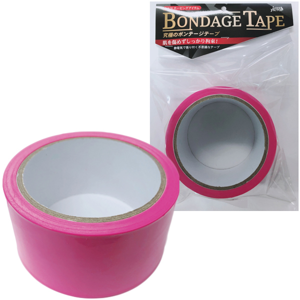 髪や体毛に絡まず痛くない♪目隠しにも使える全長20m、幅5cmのピンクボンテージテープ。粘着剤を使わず静電気だけでしっかり張りつくから肌を傷つけにくい!巻くだけで手軽に動きが制限できるボンテージテープです。入門用にも最適です♪