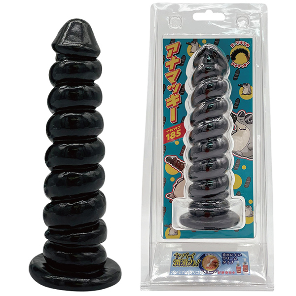 見た目が特徴的なツイスト形状のアナルディルド「アナマッキー185(イチハチゴ)」。先端部分は亀頭形状で挿れやすく、段々が付いたツイスト形状ですのでズボズボと抜き差しするのが楽しくなる程よい刺激のアナルディルドです♪ミドルタイプの全長18.5cm。大きさ的にはミドルサイズで太すぎず短すぎずでちょうどいい刺激なのが特徴です!素材は定番のPVC素材。張りもあって自在に曲がる弾力性も備えているのでアナル内を気持ちよく刺激してくれそう♪底部は土台になっていてストッパーとしての装備。ツイストの段々高低差に高低差があるので挿入した時の存在感も感じられます♪