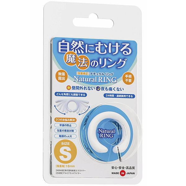 自然にムケる魔法の包茎矯正リング!「手術したくない」「自力で解決したい」そんなアナタに最適!清潔さを保ちながらスムーズな「脱皮」「成長」と「コントロール可能な持続力」を実現する魔法のリングです。自由に曲がる絶妙な硬度のフラットワイヤーを内蔵した「自然伸縮構造」により、これまでになかったフィット感を実現したので●昼夜兼用、24時間の連続装用。外れにくいから動きの多い昼間でも安心。Sサイズ