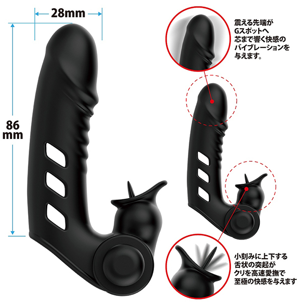 これさえあれば自分の指がクリバイブに大変身♪装着型のフィンガースリーブで、これを使うことでクリトリスを上下に小刻みに震えながら刺激しつつ、指先でGスポットをダイレクトに刺激といった2点責めが行えます。指の根本に脱着可能なマイクロローターをセットする仕様で単四電池で駆動するタイプ!シリコン素材なので装着しても動きは良好です♪