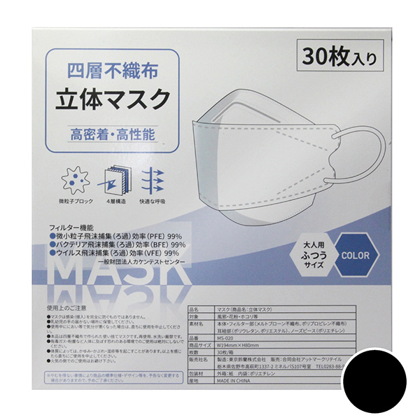 HOME> 特殊アイテム > 特選 > 四層不織布立体マスク 30枚入り (ブラック)