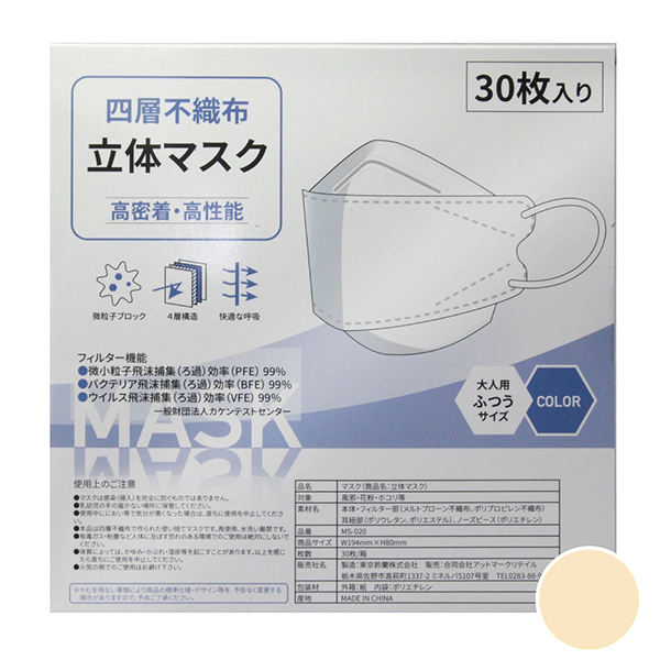 HOME> 特殊アイテム > 特選 > 四層不織布立体マスク 30枚入り (ハニー)