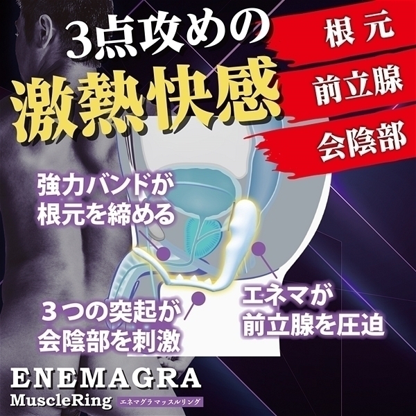 前立腺刺激と会陰部の圧迫、ペニスの締め付けで射精感UP!3つの突起が会陰部を重点的に刺激し、射精感を更にUP!根本、会陰部、前立腺の3か所を同時に刺激!100%医療用シリコン素材。