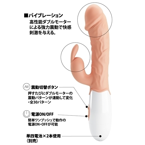 青筋浮き立つリアルな形状に、ダブルモーター搭載し中イキも外イキも逃さない!大きすぎず絶妙なサイズ感で初めての方にもおすすめ♪●30パターン強力震動●高性能強力ダブルモーター搭載●NEW TPR素材●生活防水