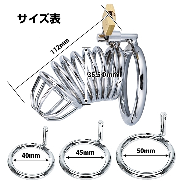 鉄の輪が連なった男性用の本格貞操帯の固定リングが3種類に増えて再登場!南京錠を掛けると、勝手に外すことは不可能!勃起は無論不可能。日常的につけ射精管理を行えます。付けたまま排泄も可能です。