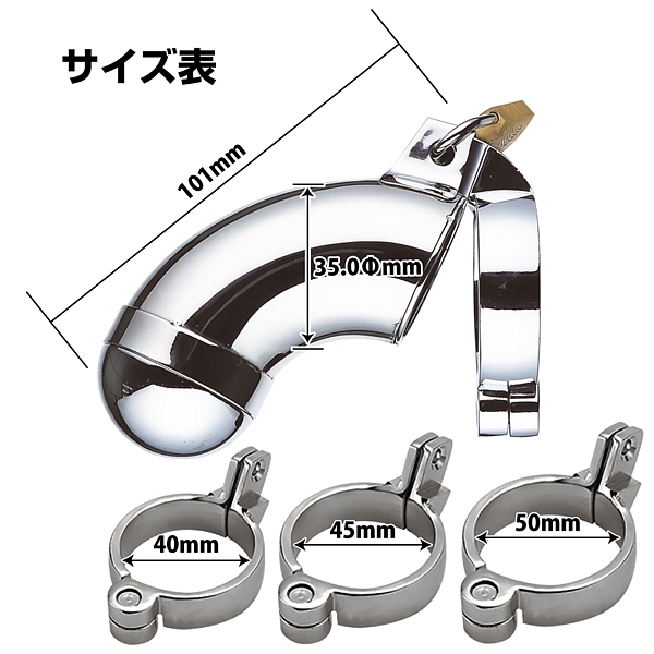 金属パイプタイプの男性用貞操帯の固定リングが3種類に増えて再登場!勃起は無論、不可能!日常的に着用し射精を管理する事も可能です。恥辱を感じる事間違いなしの逸品!