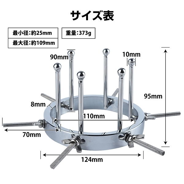 パッケージ:27.5×18.5cm 本体:開口部最少径約2.5cm・開口部最大径約10.9cm セット内容:開口用支柱6本、ワッシャー6個、蝶ナット6個、収納袋