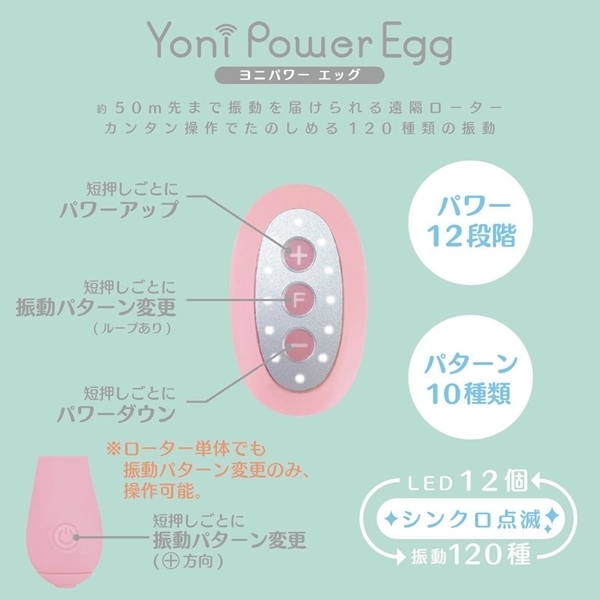 「ヨニパワー」は、女性器(ヨニ)の潜在能力を高める膣トレグッズ。インナーボールのような使い方で、きゅきゅっとデリケートゾーンを引き締め、感じやすさをエクササイズ。日本女性に合わせたサイズ感と医療用グレードのなめらかな高級シリコン・コーティングで、初心者の方も安心。リモコンは、ローターの状態が手元でわかる12LEDのスグレモノ。しかも、かわいい「しっぽアンテナ」で、一般グッズの数倍の飛距離(直線50m)を実現。