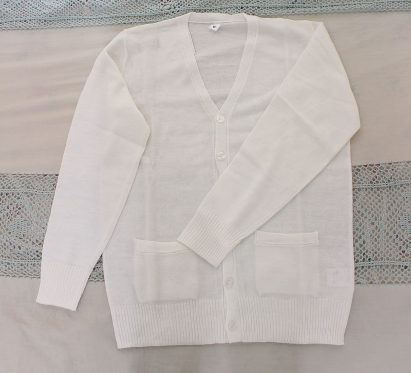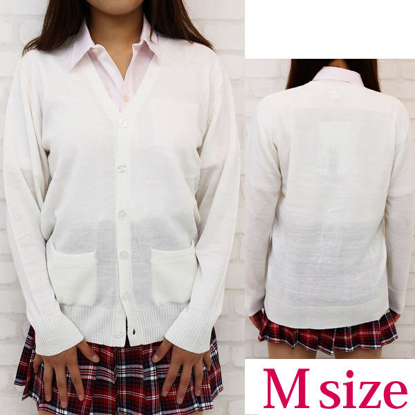 着こなし方はあなた次第!シンプルだけど、とってもオシャレな「ニットカーディガン」が新登場!制服コスプレだけでなく、私服にも合わせやすいホワイトカラー!一枚で色んなオシャレが楽しめます!こちらはMサイズでございます。※水洗い不可、塩素系漂白剤による漂白不可、アイロンは中温で当て布使用、ドライクリーニング可、色落ちの可能性があります。※こちらの商品は在庫の状況によりお届けまでに4日〜7日程度かかる場合がございます。
