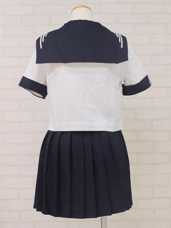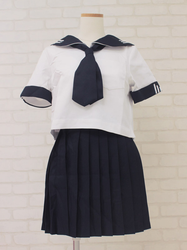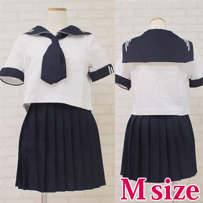 独特の3本ラインがポイントになった、私立女子学園の夏服セーラー服(M)。半袖セーラーブラウス、プリーツスカート、紺色スカーフのセットです!セーラー襟と袖に入った、個性的な白ラインがお洒落なお嬢様風制服コスプレです。※水洗い不可、塩素系漂白剤による漂白不可、アイロンは中温で当て布使用、ドライクリーニング可、色落ちの可能性があります。※こちらの商品は在庫の状況によりお届けまでに4日〜7日程度かかる場合がございます。