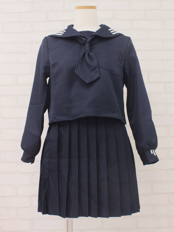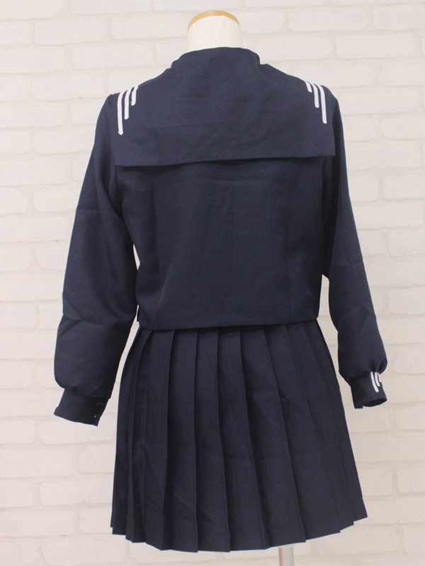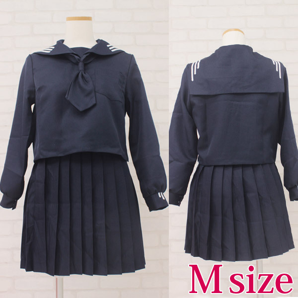 個性的な3本ラインがポイントになった、私立女子学園の長袖セーラー服(M)。冬服仕様のセーラーブラウスにプリーツスカート、紺色スカーフのセットです!セーラー襟と袖のデザインがお洒落なお嬢様風制服コスチュームです。※水洗い不可、塩素系漂白剤による漂白不可、アイロンは中温で当て布使用、ドライクリーニング可、色落ちの可能性があります。※こちらの商品は在庫の状況によりお届けまでに4日〜7日程度かかる場合がございます。