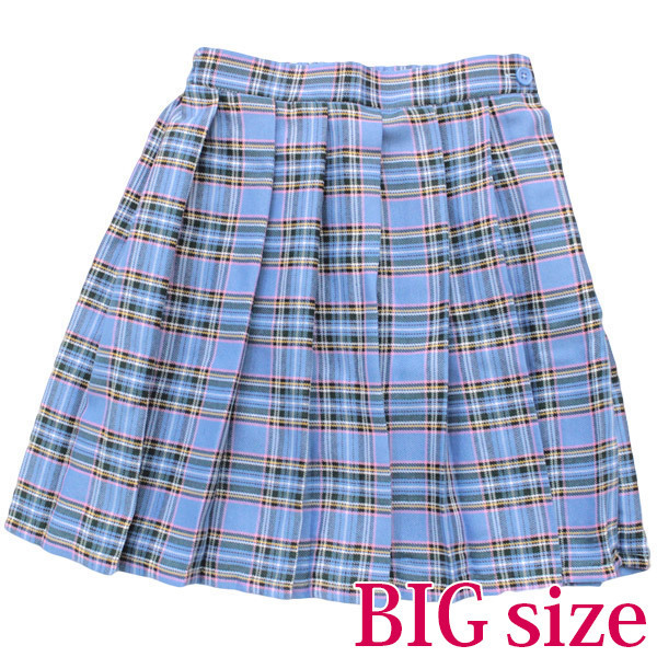 一着は持っておきたいヘビロテアイテム!爽やかな水色のチェック柄プリーツスカート(BIG)。スカート丈は46cmと少し長め仕上げ!お手持ちのセーラー服にも、ブレザー制服にも合わせられる万能コスチュームです。※水洗い不可、塩素系漂白剤による漂白不可、アイロンは中温で当て布使用、ドライクリーニング可、色落ちの可能性があります、ご注意ください。※こちらの商品は在庫の状況によりお届けまでに4日〜7日程度かかる場合がございます。
