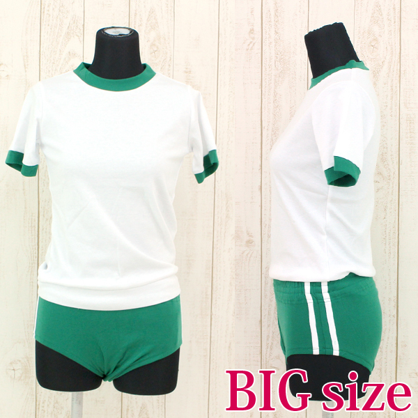 人気体の操着コスプレに新色グリーンの大きめサイズ、トップス&ブルマの上下セットが登場しました♪白とグリーンのカラーリングはどこか懐かしさを感じさせる可愛いデザイン!スベスベ素材は伸びの良い生地を使用で着心地良く、運動の際もしっかりのびのびと動けます♪緑ブルマのサイドには白い2本のライン入りでちょっぴり本格派!洗濯時には手洗いも可能です。※手洗い可、塩素系漂白剤による漂白不可、アイロンは中温で当て布使用、ドライクリーニング可、色落ちの可能性があります。※こちらの商品は在庫の状況によりお届けまでに4日〜7日程度かかる場合がございます。