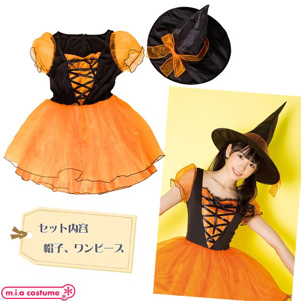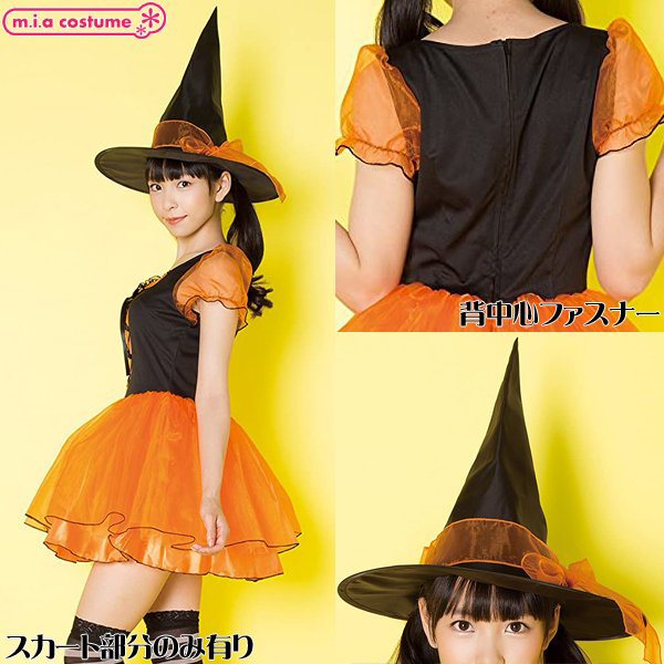 ハロウィーンの夜は魔女になりきり変身!オレンジ×黒の定番ハロウィンカラーで可愛く仕上げたキュートな魔女コスプレ。パフ袖やスカートに透明感のあるオーガンジー素材を使用しお洒落にデザイン!別途パニエを合わせれば、よりふんわり感アップ♪可愛いウィッチガールになれちゃいます。スカートのみ裏地付、背面ファスナー仕様◎Fサイズ※洗濯不可、塩素系漂白剤による漂白不可、アイロン不可、ドライクリーニング不可※こちらの商品は在庫の状況によりお届けまでに4日〜7日程度かかる場合がございます。