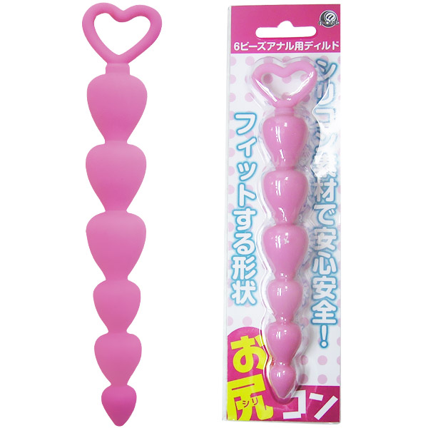 入れやすくって抜けにくい!ハートの持ち手が可愛い6連アナルスティック。シリコン製のアナルスティック(ピンク)は、先端が細くなった涙形のビーズ(13mm〜23mm)が6つも連なっています。柔らかくしなるので腸内を傷つけにくく安心。また、抜けにくい形状でアナルにジャストフィットします。持ち手は指をからめやすいハート型なので、使い勝手も抜群です!
