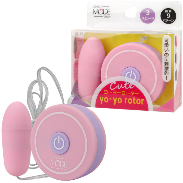 ボタン1つでモードが変化!有線リモコンをヨーヨーに見立てたキュートなシングルローター。長めに押すと電源がOFFに!ボタンを押すごとに3段階のスピード&9つのファンクションを楽しめる、パステルピンク×パープルのローターです。振動部分は小ぶりな弾丸フォルム!ピンポイントに刺激を伝えるので、クリトリスや乳首責めにオススメです。
