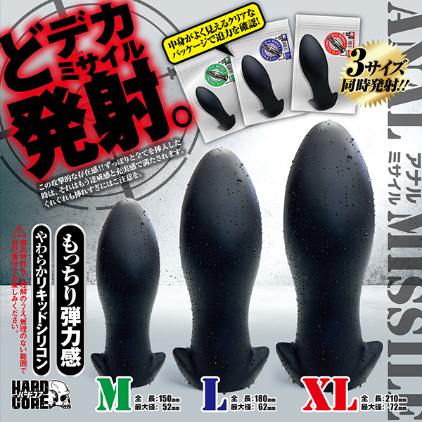 超攻撃的!圧倒的インパクト!ミサイルみたいなプラグがエーワンハードコアシリーズに仲間入り!!このドデカさがたまらない…この迫力、警報級!一度挿れれば充実感と達成感であなたを満たす。アナルに投下し、全てを飲み込め!●リキッドシリコン…サラサラな挿れ心地。汚れもサッと落とせる。●もっちり弾力●Mサイズ…中級者〜上級者向け。<ハードコアシリーズとは?>頭が真っ白になるほどの未知なる刺激…コントロール不能な快感…目指すはエキスパート。極める者だけが味わえる、気絶しそうなほどの悶絶快感。エーワンが送る、ハードで本格的な使用感を体感できるグッズブランドです。