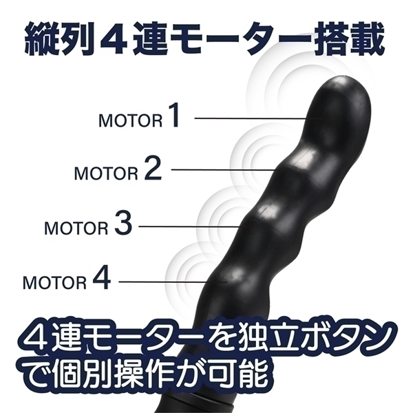 4つのモーターを搭載した高機能モデルです♪先端から根元までそれぞれ独立して操作できる設計で、お好みに合わせたカスタマイズが楽しめます!3段階の振動強弱と5種類のパターン振動を組み合わせて、自由自在に設定可能です♪先端だけハイパワーにして、根元はリズミカルな動きにするなど、多彩なバリエーションを体感できます!さらに特別なCLIMAXボタンを搭載し、全モーターを一斉に振動させたり、順番に波打つような動きを選べます♪表面素材には、リアルなやわらかさと滑らかな肌ざわりを再現した特殊TPE素材を採用!約60分の充電で、最大90分の長時間使用も可能です♪