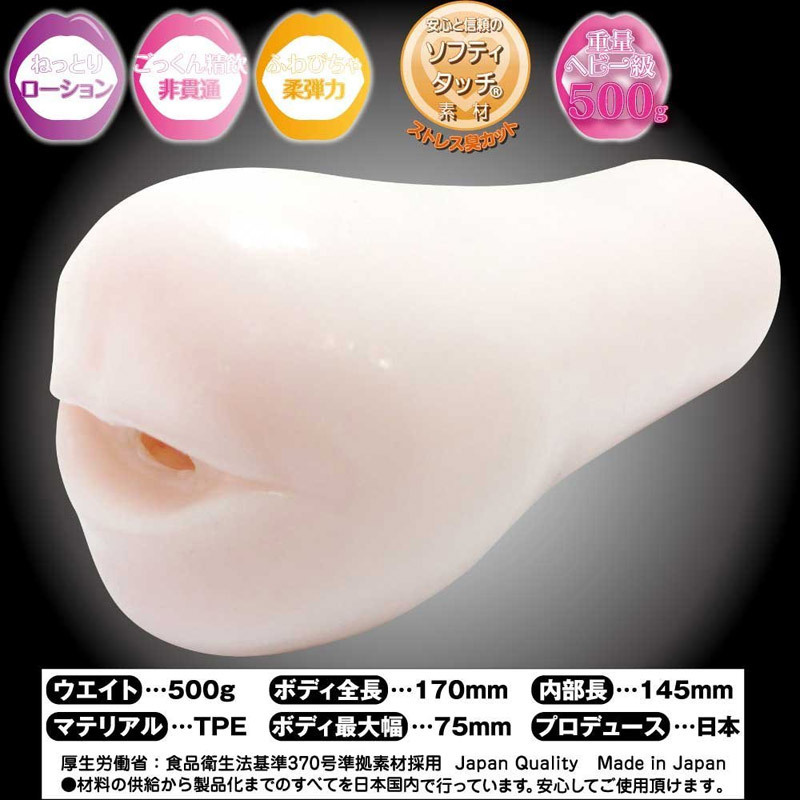 RIDE社から飛ぶ鳥を落とす勢いでヒットしている「ふわフェラディープイラマチオ」が登場!ふわトロ素材を贅沢に使用したまったりホールで、現実では味わえない優しくて濃厚なフェラチオを楽しめます♪内部には突出した「とがり舌」とのどちんこ突起が配置され、驚愕のイラマチオ体験を提供します。見た目とは裏腹にふわトロ素材が刺激を軽減し、快感へと変化!この非貫通型オナホールは一味も二味も違う快感が楽しめる逸品です♪ぜひふわフェラディープイラマチオで、まったり感と刺激を味わってみてください。