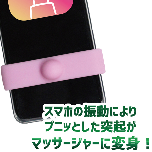 スマホに巻くだけでローターに早変わり!プニプニ柔らかくて気持ちいい突起付きのシリコンリング。携帯端末に本品を装着し、ダウンロードしたアプリで振動させるだけ!あとは自分の敏感な部位にフィットさせれば、どこでも手軽にピンポイント刺激が味わえる♪もっちりとした質感で伝導率抜群な新素材ウォーターシリコンを使用したお手軽携帯グッズです。