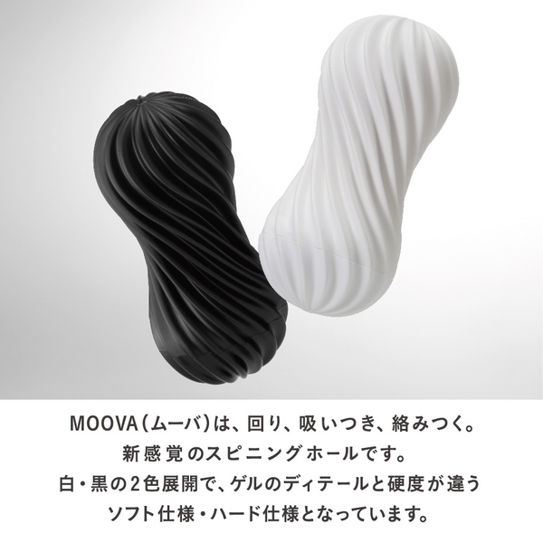 回って吸いつき絡みつく新快感!スタイリッシュなケース入りの「TENGA MOOVA(テンガ ムーバ)」ソフトタイプが登場。●SILKY WHITE(シルキーホワイト)。●ツイスト状の軟質素材ケース。●握ったり捻ったりと変形自在。●ケース底にエアホールを配置。●バキューム力でケースが回転。●ソフト仕様のインナーホール。●ニオイやベタつきのない素材。●繊細ヒダ&吸盤イボの快感構造。●インナーは取り出して洗浄可。●繰り返して使用可能(約50回)。まるで現代アートのオブジェのように美しい独特フォルムがテンガらしい新次元のTENGA MOOVA。ツイスト状ケース底面の空気穴を塞ぐと、内部気圧が変化しバキュームが発生!その状態でピストンすると連動してケースが回転するという斬新ギミックを搭載!さらに、雑巾を絞るように直接ケースを捻れば、絡みつくような摩擦刺激も体感できます。革新的な快感と美しさ、さらに利便性も高いTENGAをお楽しみ下さい。TENGAの使い捨てオナホール、ディープスロートカップ(r06455)や黒テンガのフリップホールブラック(r03378)もどうぞ!