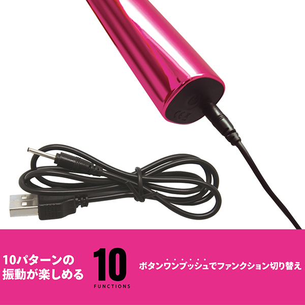 シンプルで使いやすい!スタイリッシュなバレット(弾丸型)デザインの「FINE BULLET (METALLIC MAGENTA)」です。脅威のハイパワーを誇るバイブレーションが特徴で、振動音が小さく防水機能も優れているので使う場所を選びません♪電源は充電式!電池切れの心配もなく、超強力なローター振動を存分にお楽しみ頂けます♪振動パターンは10種類!ボタン長押しで電源のONとOFFが切り替わるので操作も簡単です♪充電用USBケーブル付属。●メーカー型番:TMTG-005