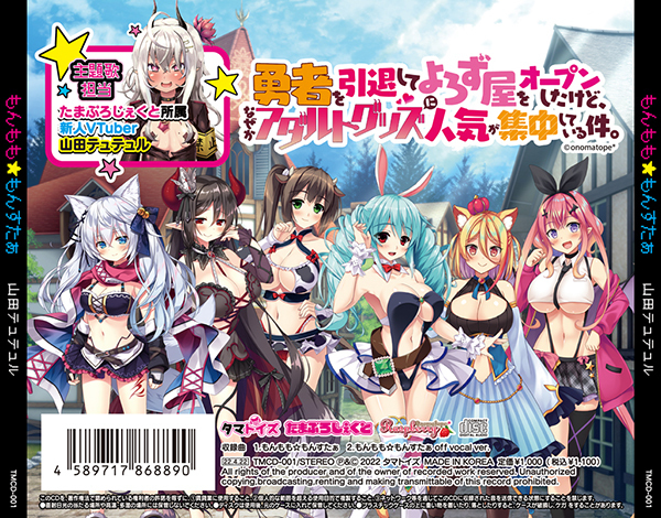 「もんもも☆もんすたぁ 山田テュテュル」。収録内容は主題歌「勇者を引退してよろず屋をオープンしたけど、なぜかアダルトグッズに人気が集中している件」♪主題歌担当はたまぷろじぇくと所属の新人Vtuber山田テュテュル!と「もんもも☆もんすたぁ off vocal ver. Vocal」です。キャラクターデザインにatahuta氏、SDイラストはおおやまちろる氏が担当♪●メーカー型番:TMCD-001 ●メーカー型番:TMCD-001