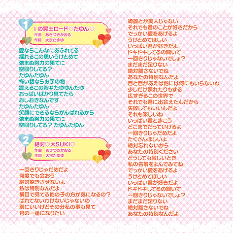 たまぷろじぇくと所属の「大宗たゆゆ」。収録内容は「Iの冥土ロードたゆん」、「絶対大SUKI」、「明日はお天気」です。主題歌担当はたまぷろじぇく。●メーカー型番:TMCD-002●メーカー型番:TMCD-002