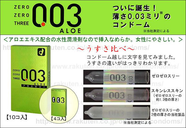 HOME> コンドーム > 薄い・厚い > オカモト ゼロゼロスリー003 (アロエゼリー)